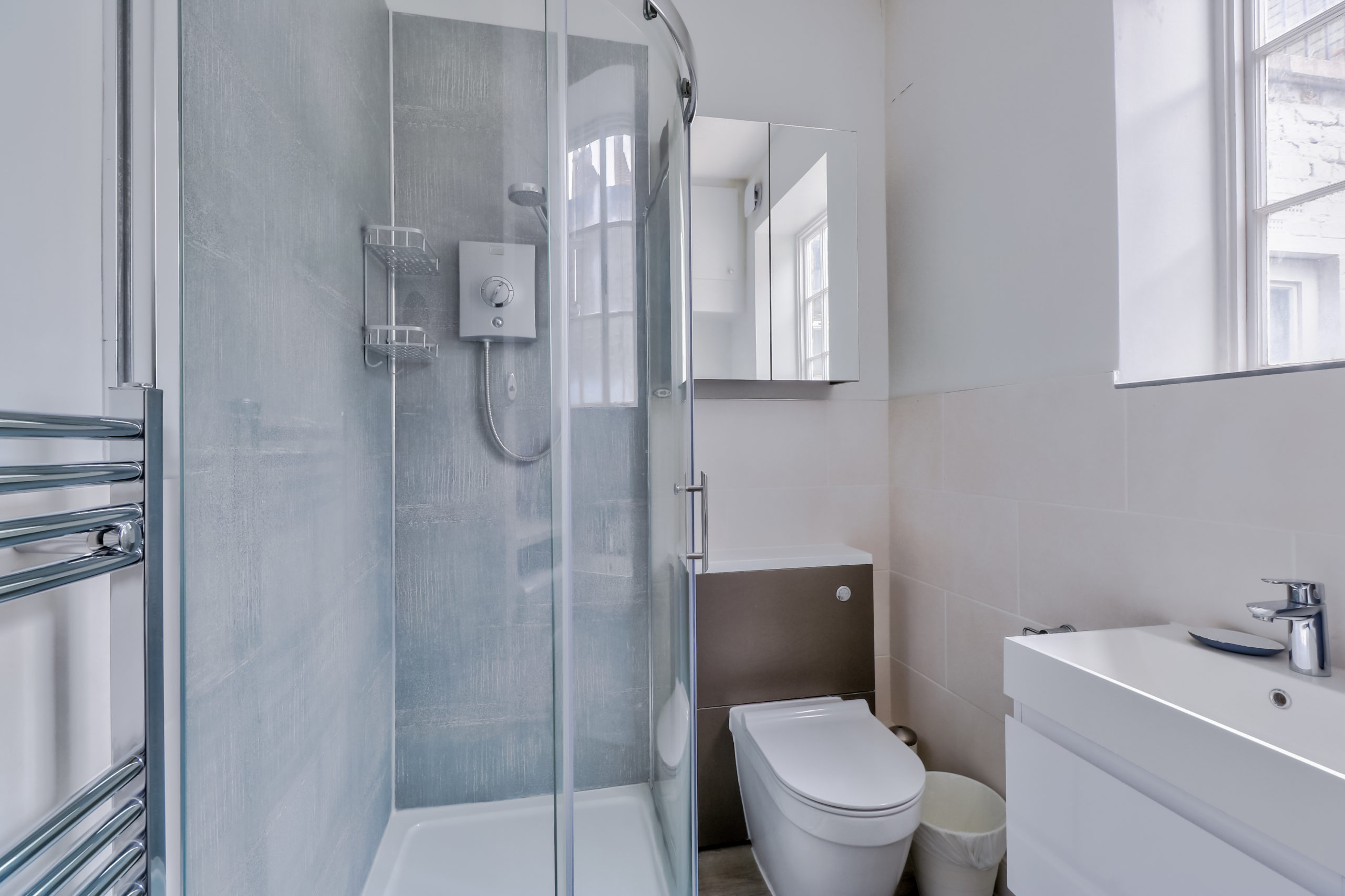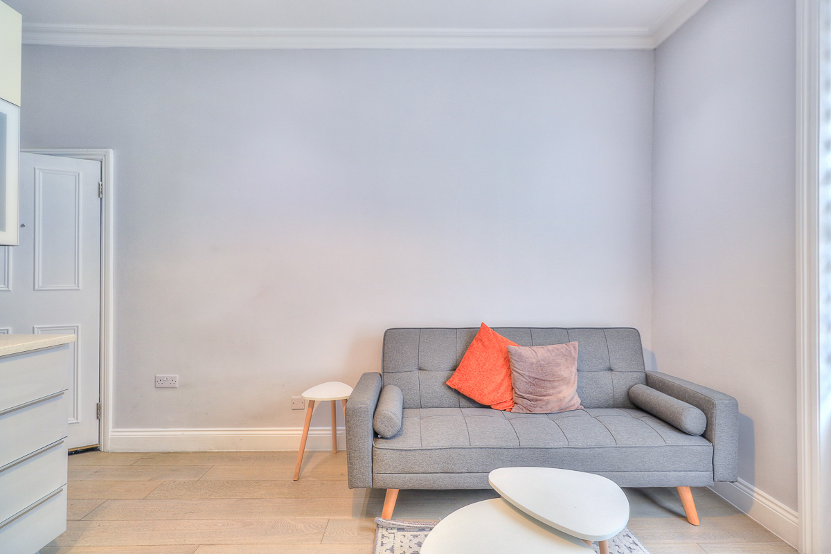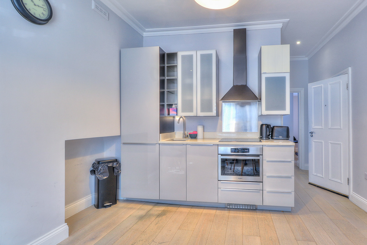 This flat is on the ground floor of a stunning Georgian period terraced house. The entrance hallway opens to the kitchen/living area, bedroom and bathroom.