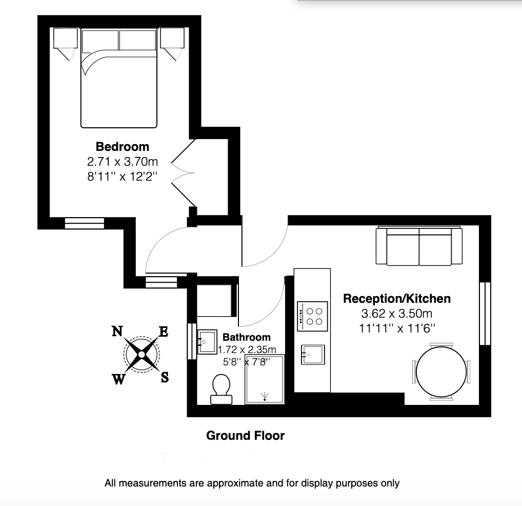 This flat is on the ground floor of a stunning Georgian period terraced house. The entrance hallway opens to the kitchen/living area, bedroom and bathroom.