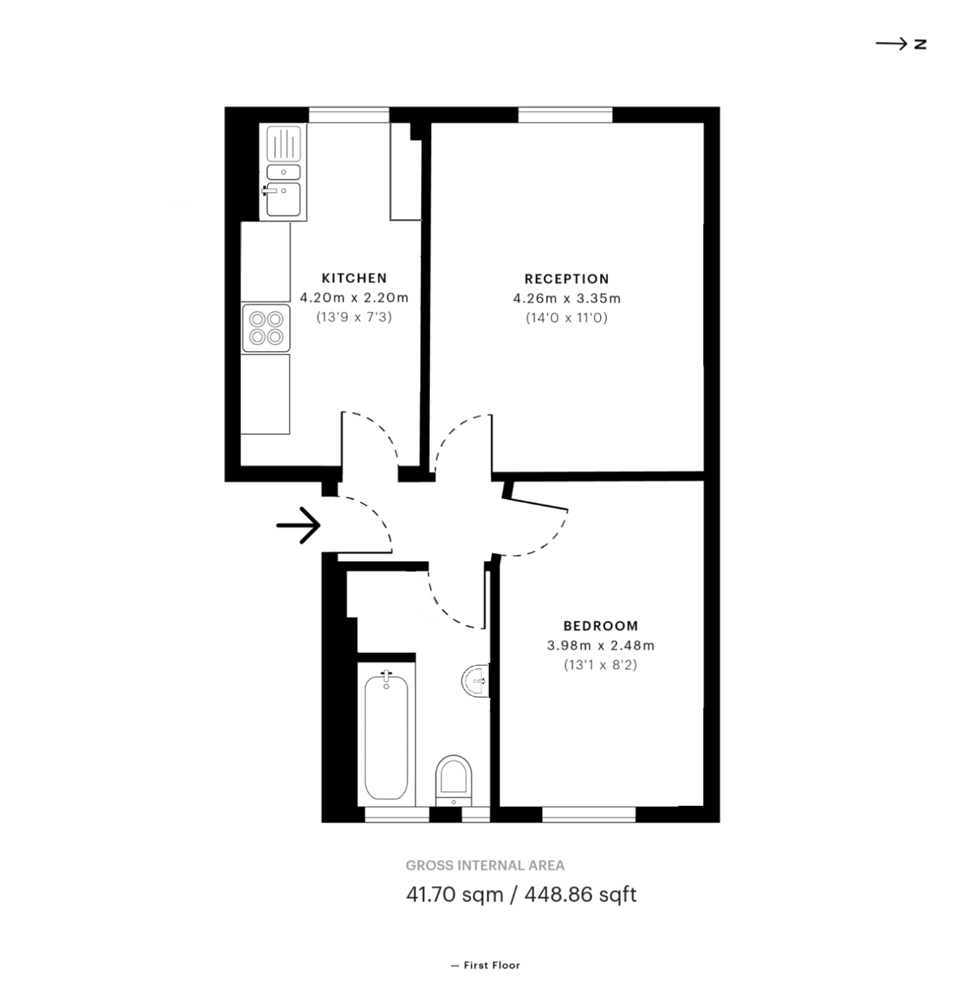 With wooden floor throughout and sash windows, it comprises a reception room, fully integrated seperate fitted kitchen, double bedroom and bathroom.