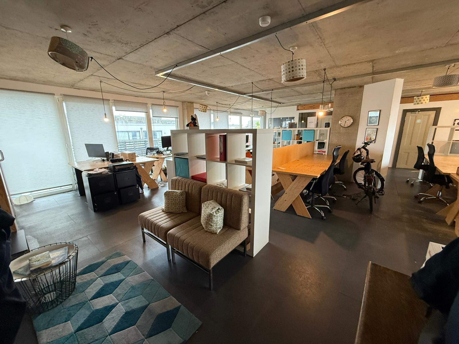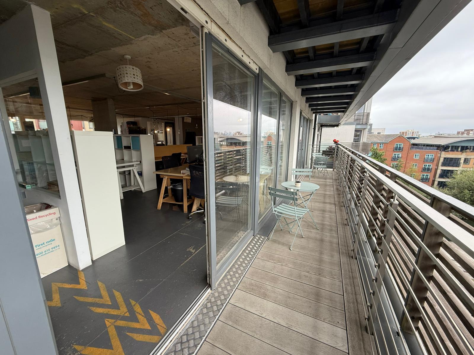 A 1500sqft Fully self-contained commercial unit benefits from wonderful views from the Fifth floor of this multi-use building. Large windows run along the entirety of the north side of the building creating a light and bright office unit. Other features in the space include a fully DDA compliant private WC, shower facilities and fitted kitchenette. The space currently has space for 20 desks, with a glass partition meeting room and breakout area directly opposite the kitchenette.