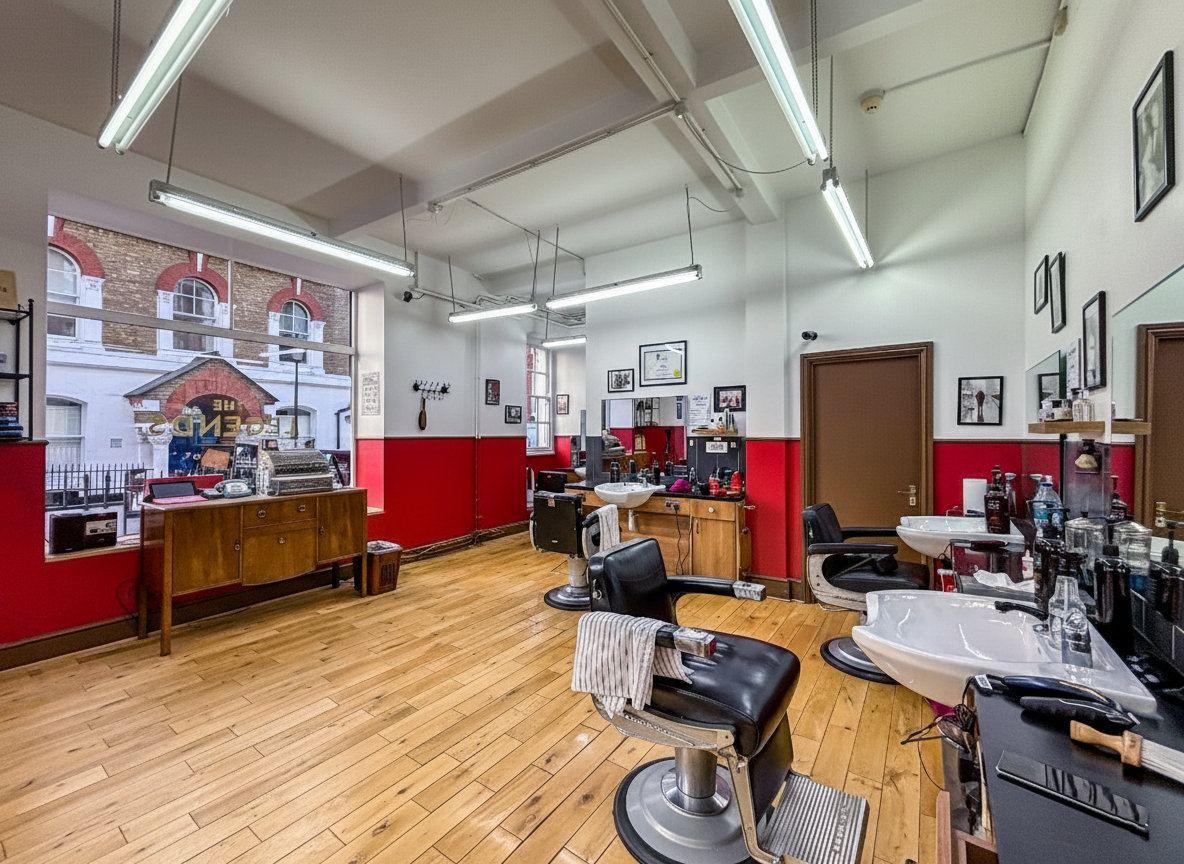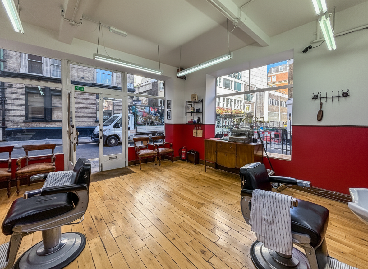 Centrally located Barbershop/Hairdressers for sale near Charing Cross/Embankment. Ground floor property with heavy footfall and transport links. Size: 470 sq ft. Lease until 2030, rent £37,000. Premium £40,000. EPC available. Viewing by appointment.