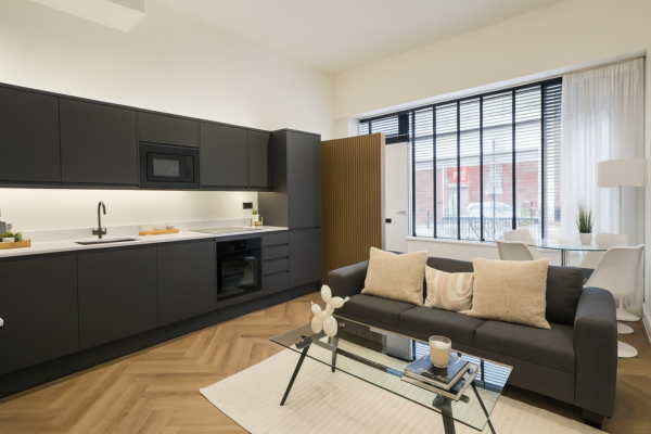Introducing a newly refurbished ground floor apartment in Aldgate, situated just off Petticoat Lane Market. This two-bed two-bath residence spans 700 square feet and features two spacious double bedrooms, a generously proportioned lounge/kitchen with impressive high ceilings and modern bathrooms.