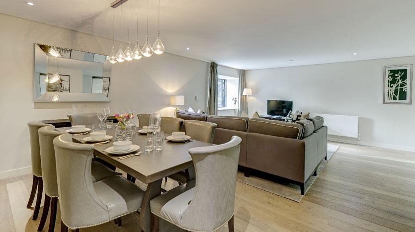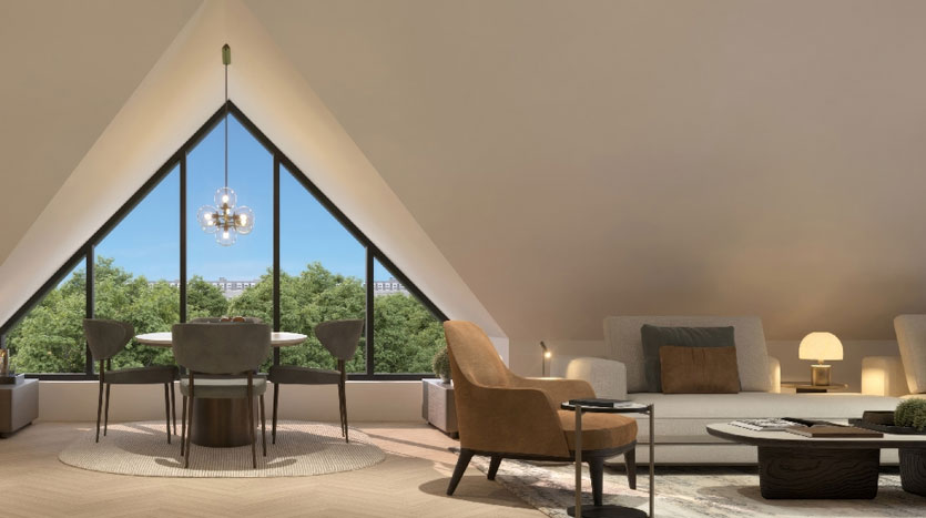 The apartment comprises underfloor heating in all living areas and high-end appliances in the kitchen space.